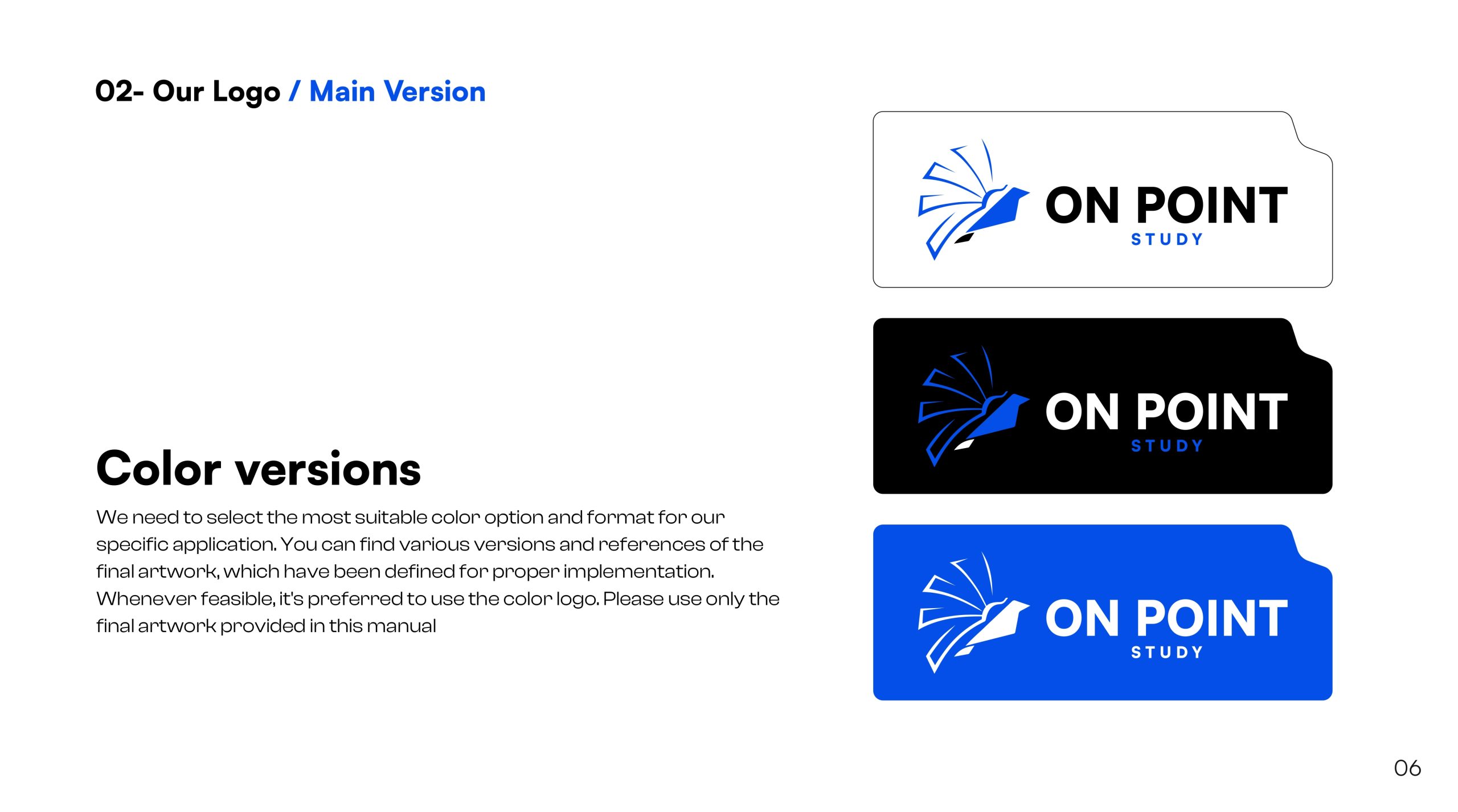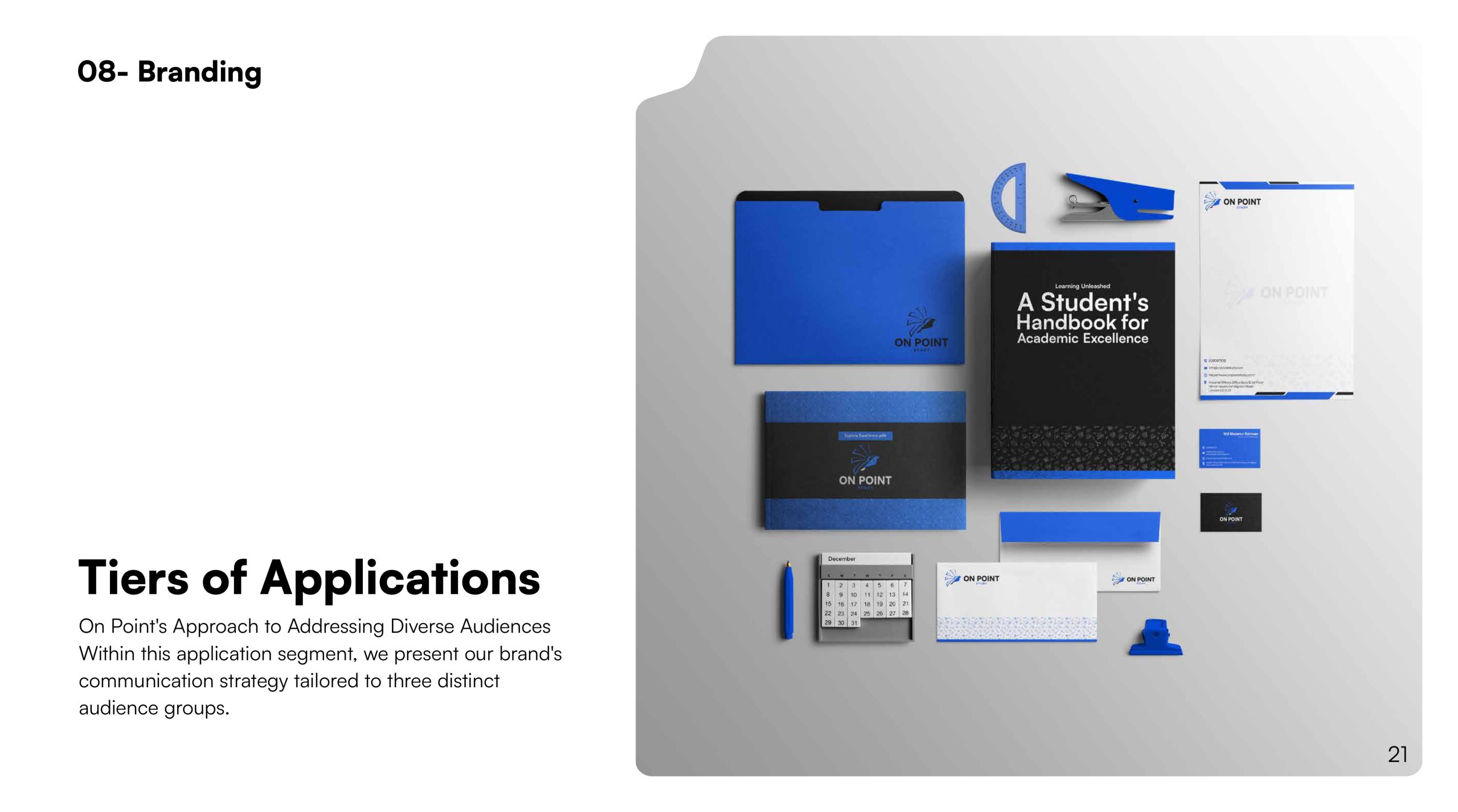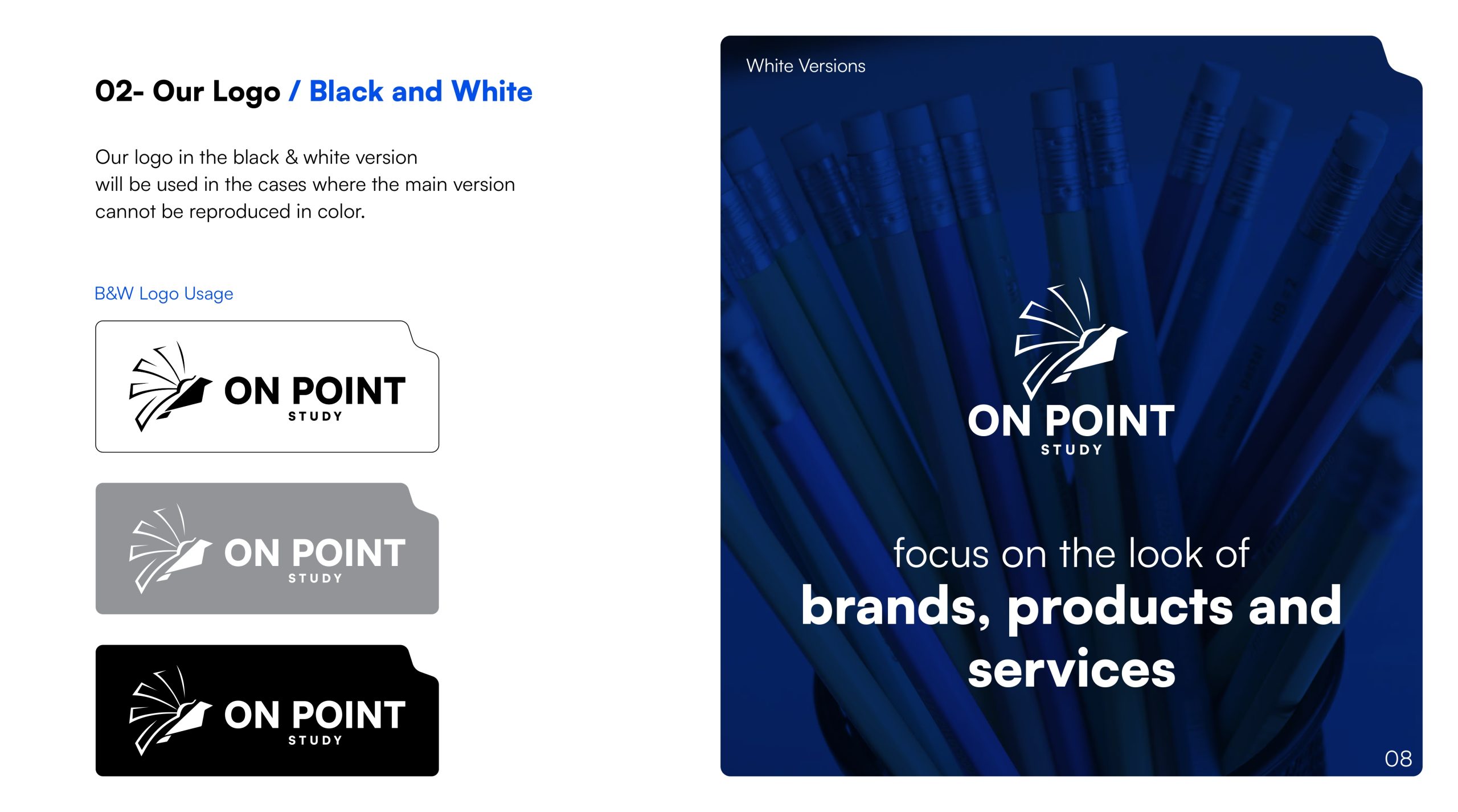 Delivered a revitalized brand identity, detailed creative guidelines, and an enhanced logo that accurately represent On Point Study’s dedication to educational excellence. The client was delighted with the results, noting a significant improvement in brand coherence and market appeal.